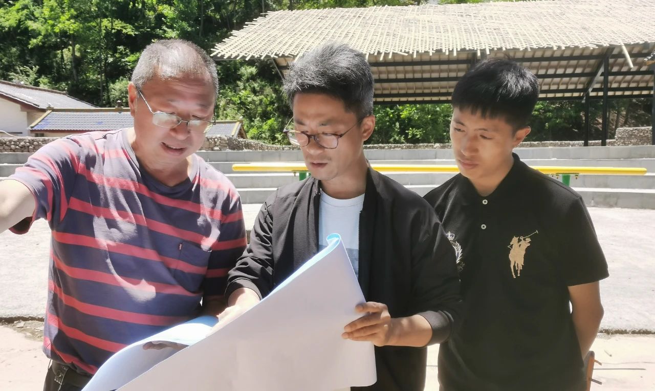尊龙凯时-人生就是搏中国官方网站电气集团派驻昭觉县特布洛村驻村第一书记肖飞与帮扶工作小组队员一起研究村容村貌升级改造